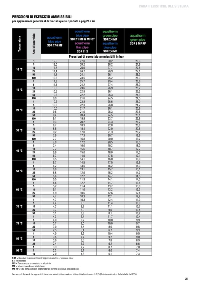 SDR = Standard Dimension Ratio (Rapporto diametro - / spessore tubo)