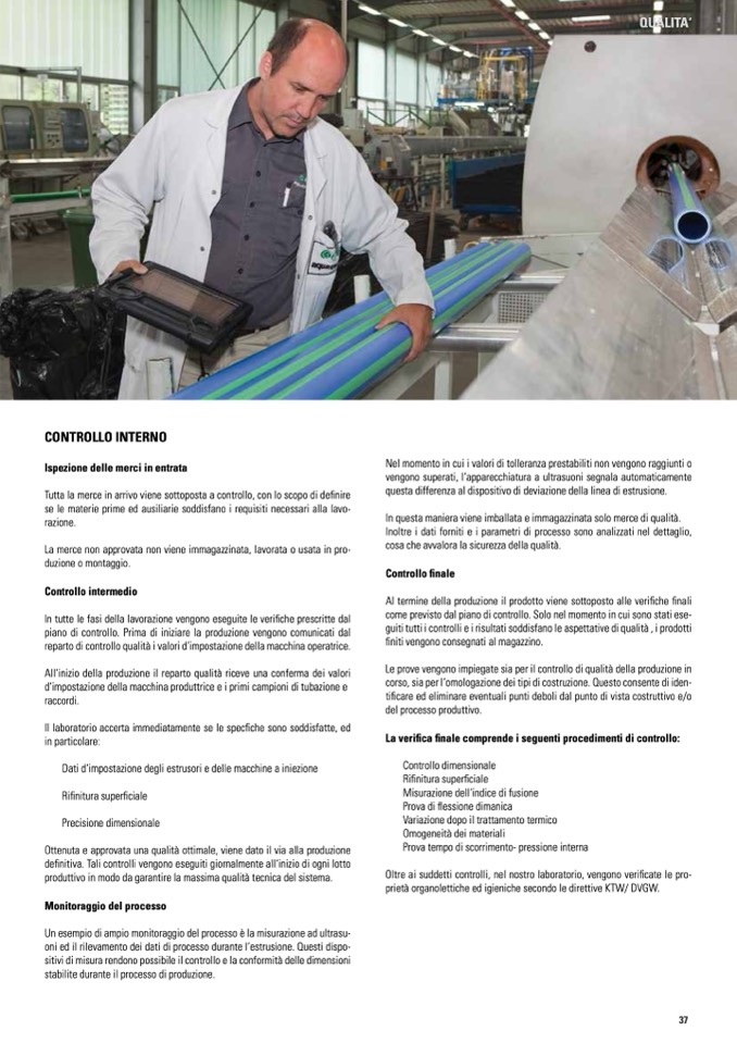 In tutte le fasi della lavorazione vengono eseguite le verifiche prescritte dal