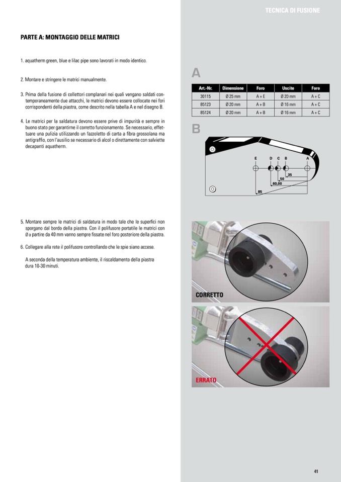 corrispondenti della piastra, come descrito nella tabella A e nel disegno B.
