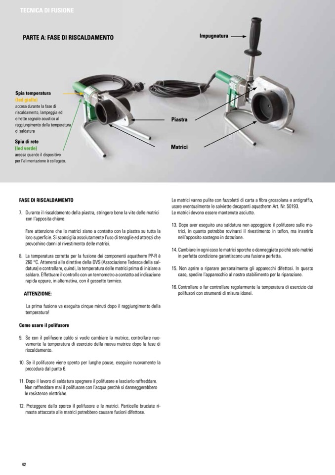 Non raffreddare mai il polifusore con l’acqua perchè si danneggerebbero