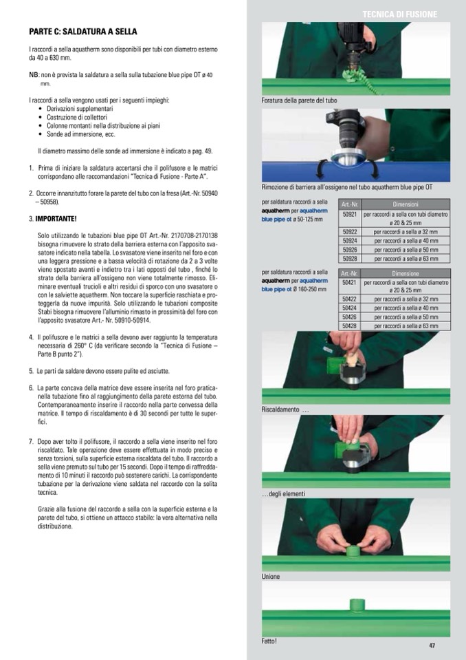 NB: non è prevista la saldatura a sella sulla tubazione blue pipe OT ø 40