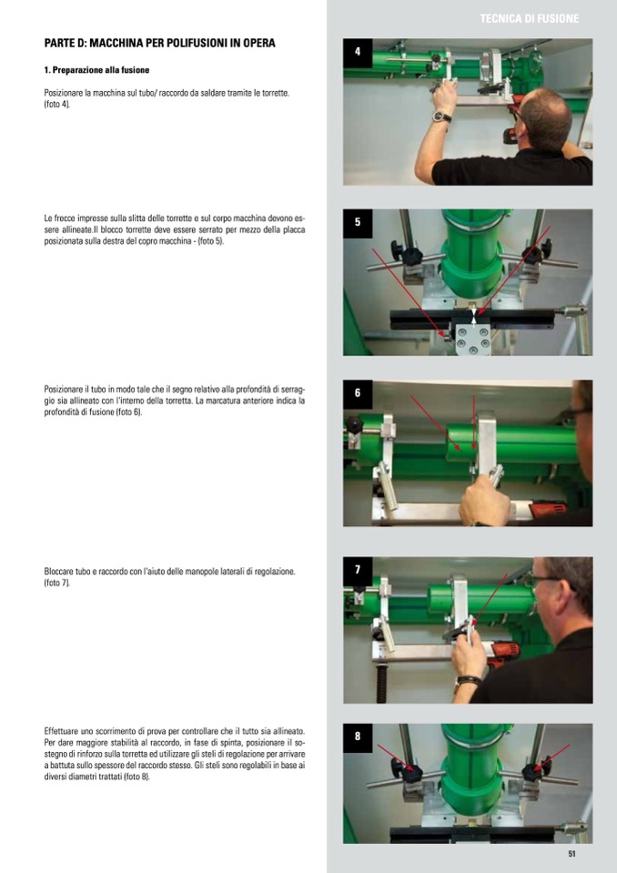 Posizionare la macchina sul tubo/ raccordo da saldare tramite le torrette.