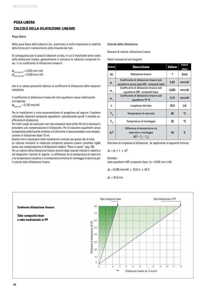 Il coefficiente di dilatazione lineare dei tubi aquatherm senza stabilizzante