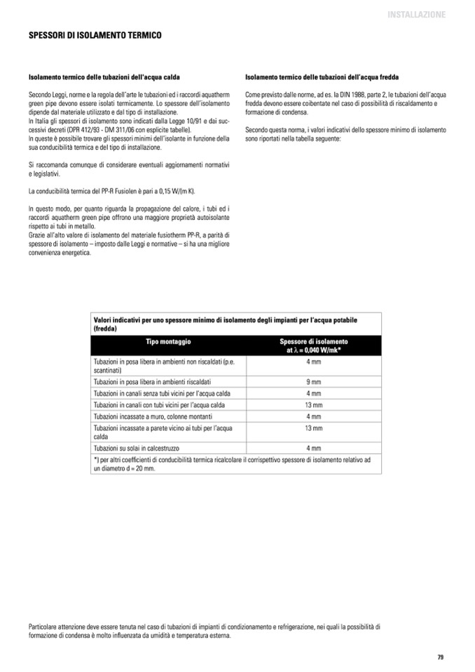 green pipe devono essere isolati termicamente. Lo spessore dell’isolamento