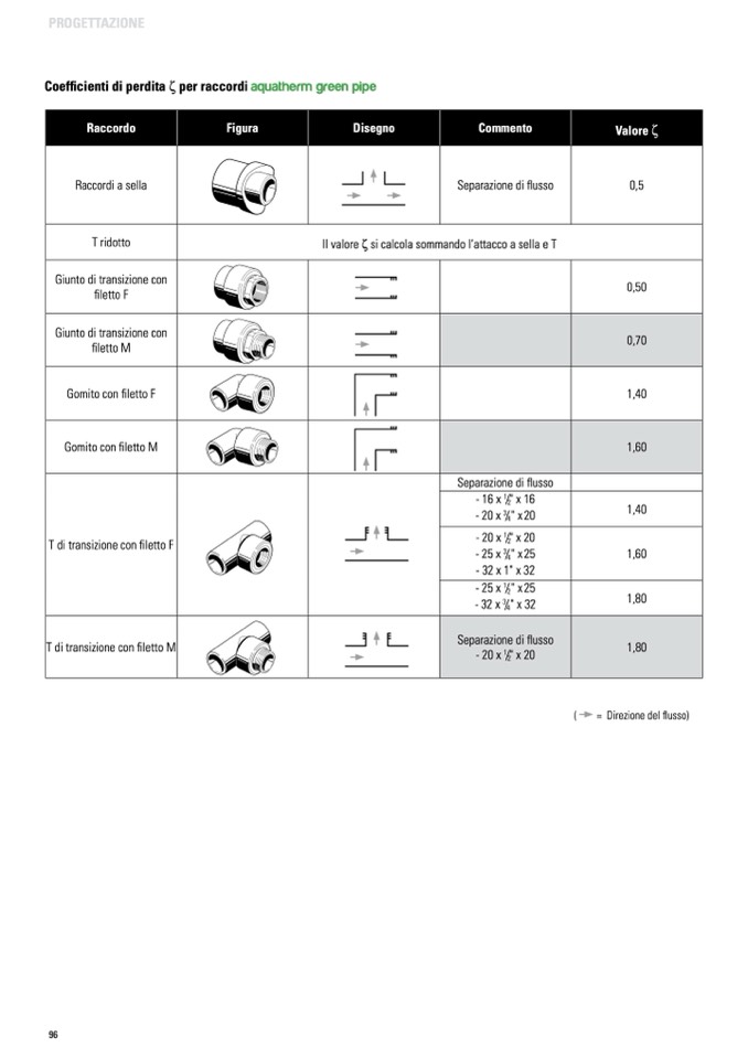 Coefficienti di perdita ζ per raccordi aquatherm green pipe