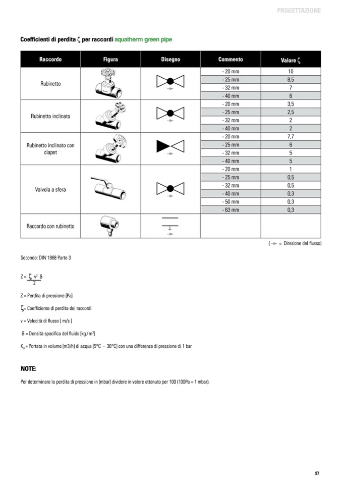 Coefficienti di perdita ζ per raccordi aquatherm green pipe