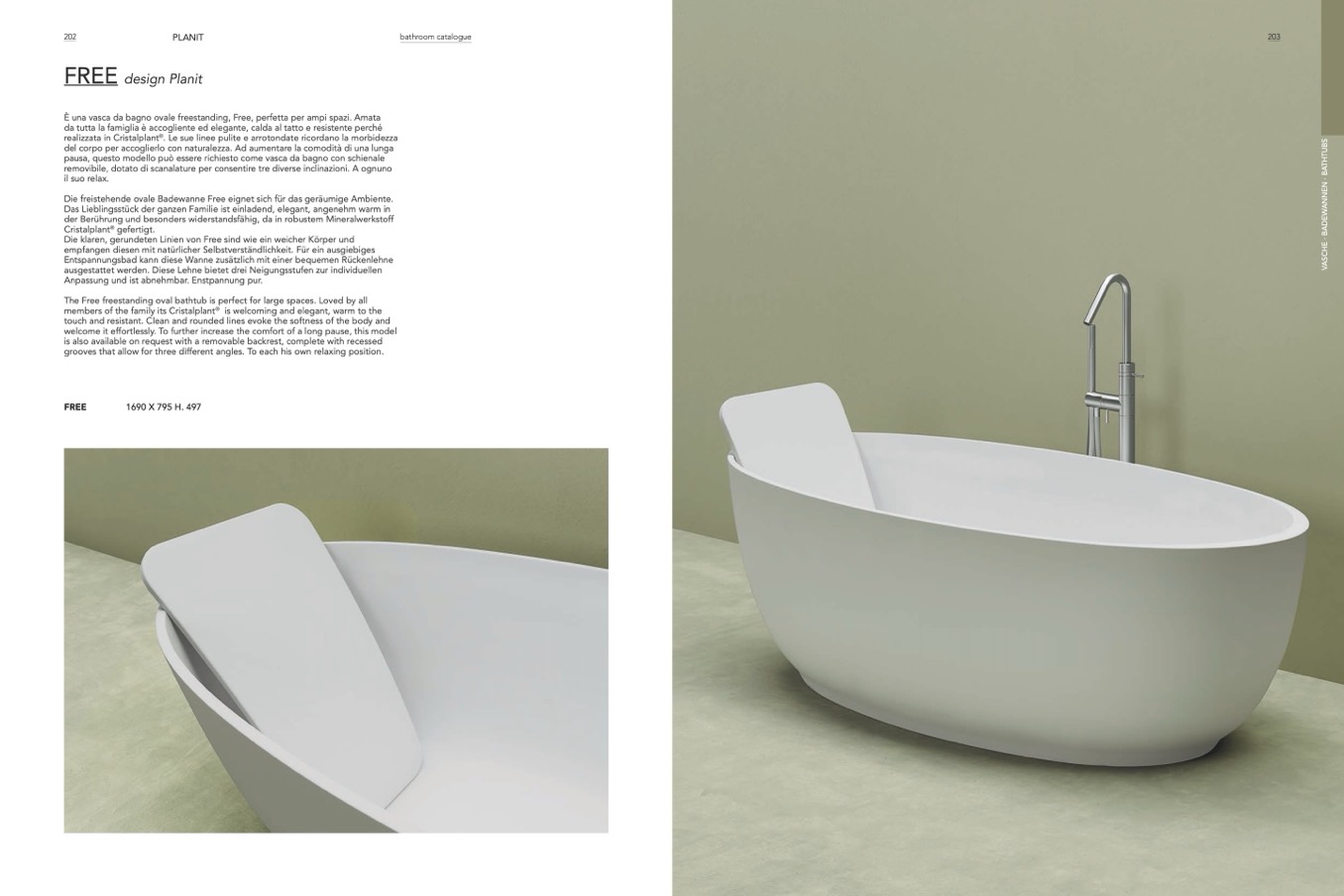 È una vasca da bagno ovale freestanding, Free, perfetta per ampi spazi. Amata