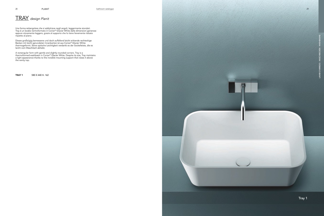 Tray è un lavabo termoformato in Corian