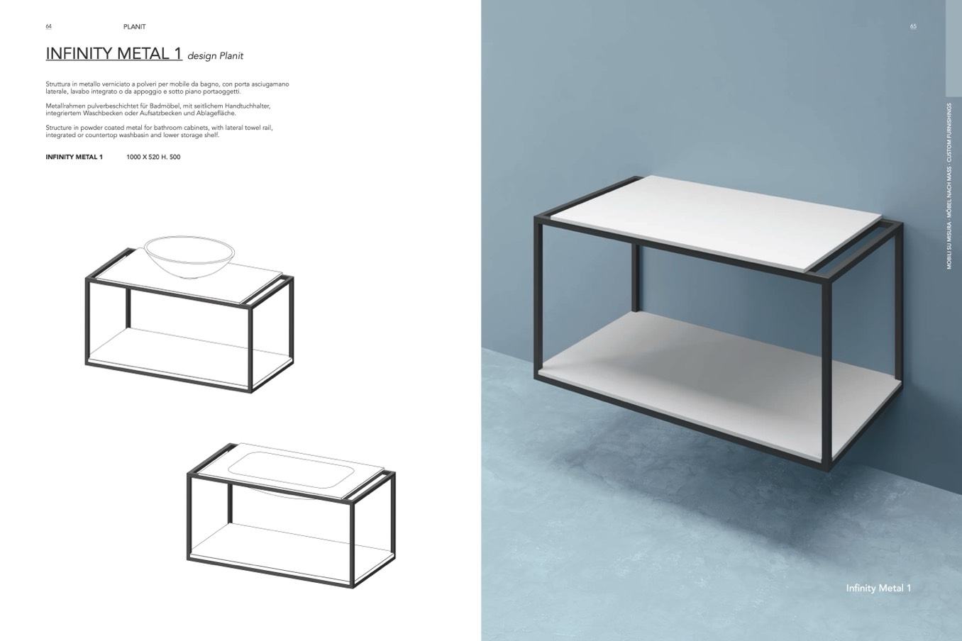 Metallrahmen pulverbeschichtet für Badmöbel, mit seitlichem Handtuchhalter,