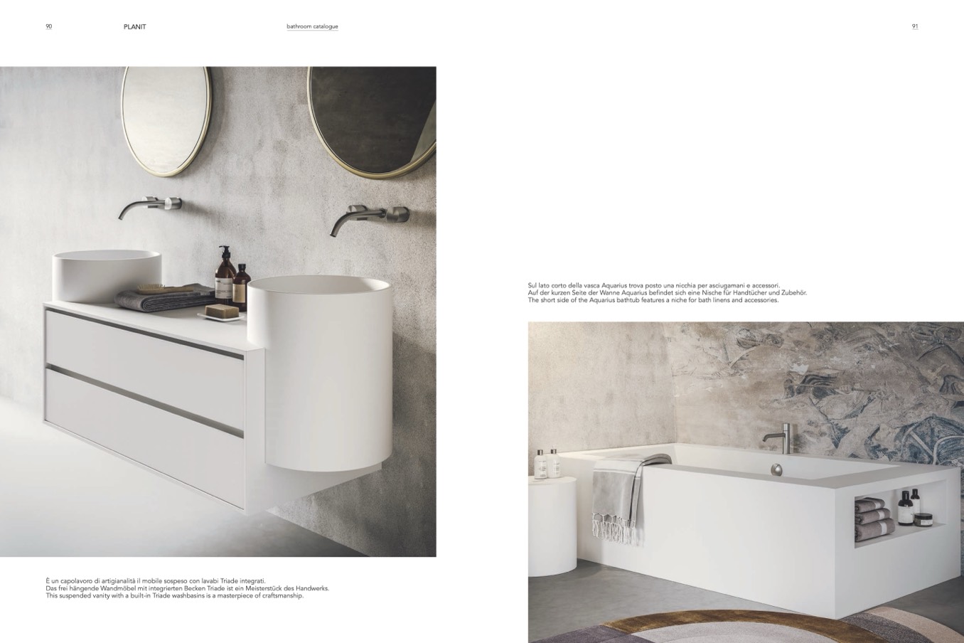 Das frei hängende Wandmöbel mit integrierten Becken Triade ist ein Meisterstück des Handwerks.
