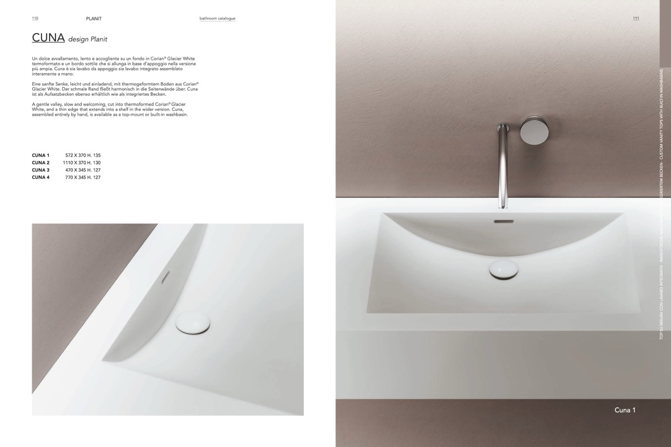 più ampia. Cuna è sia lavabo da appoggio sia lavabo integrato assemblato