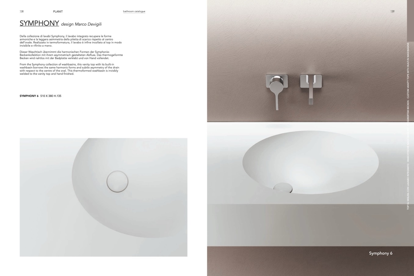 Della collezione di lavabi Symphony, il lavabo integrato recupera le forme