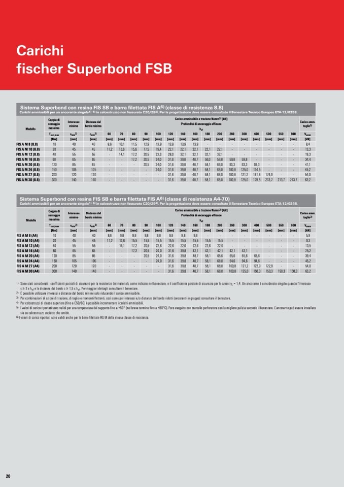 6) I valori di carico riportati sono validi anche per le barre filettate RG M della stessa classe di resistenza.