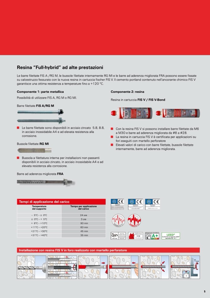 ■ La resina in cartuccia FIS V è certificata per applicazioni su