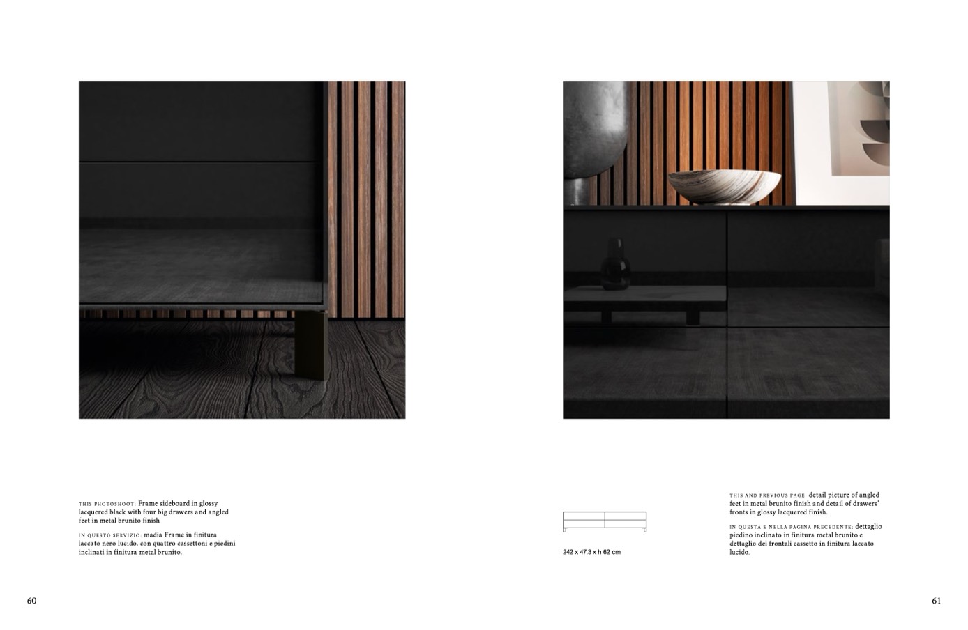 feet in metal brunito finish and detail of drawers’