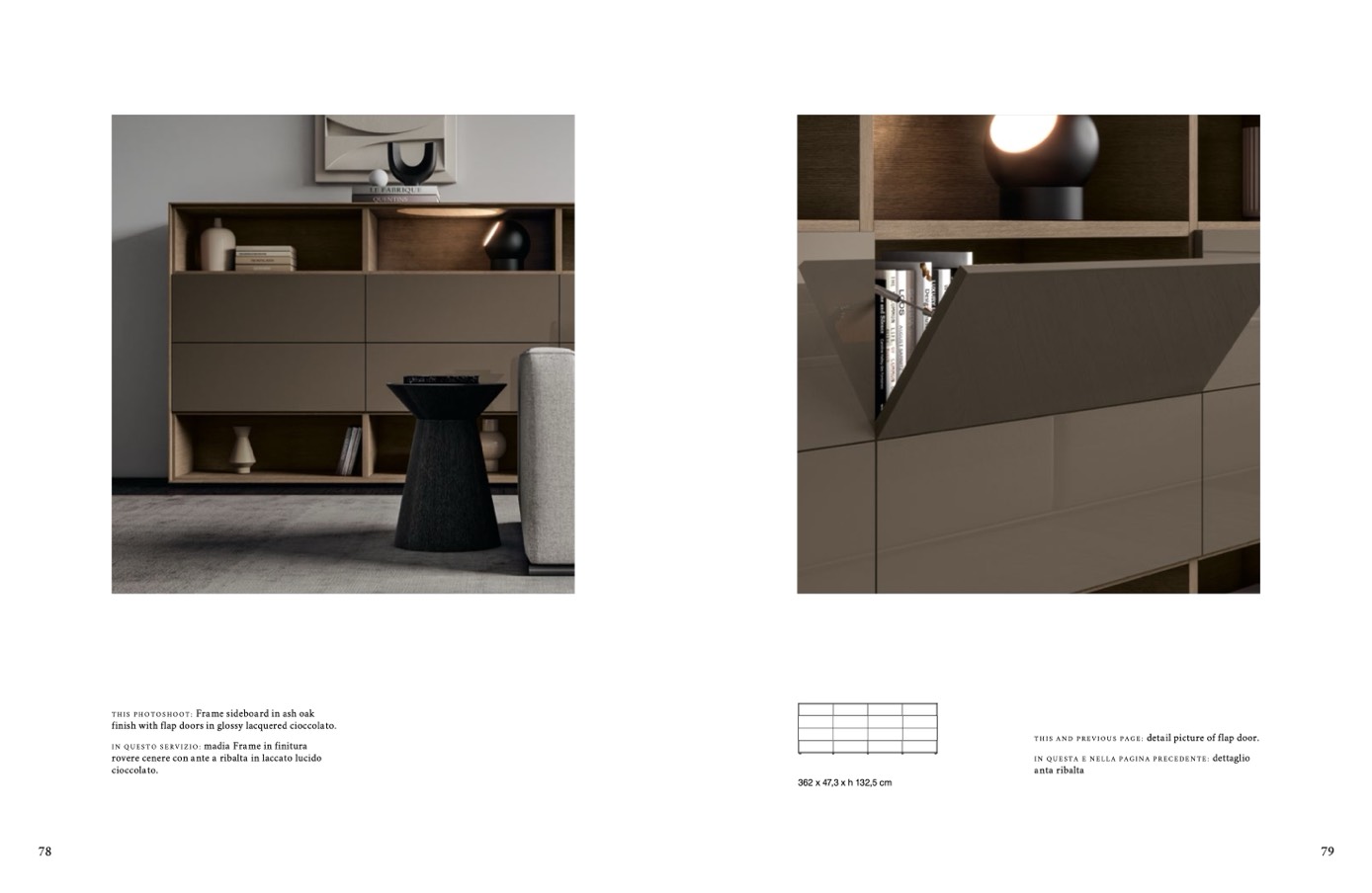 finish with flap doors in glossy lacquered cioccolato.
