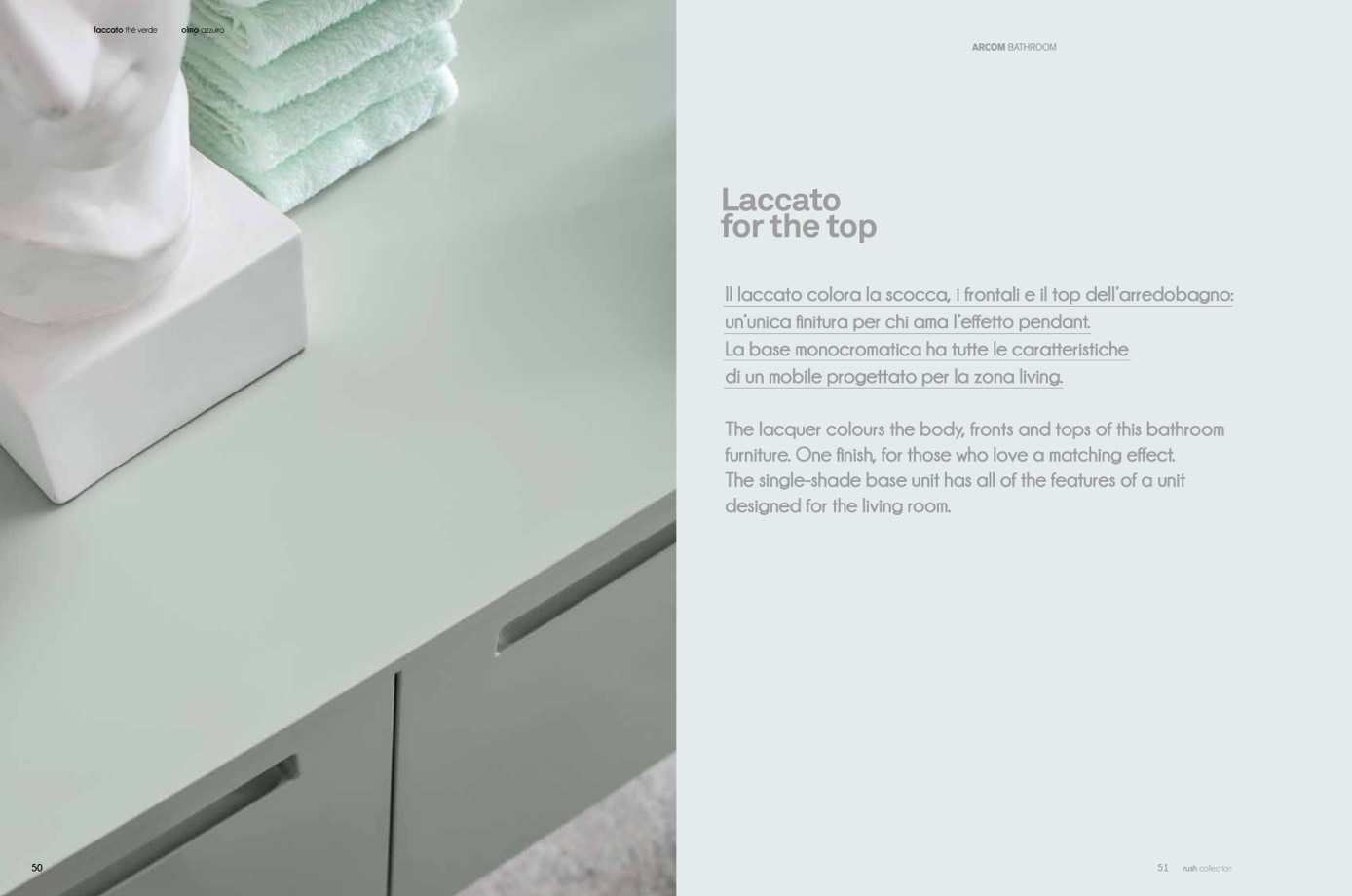Il laccato colora la scocca, i frontali e il top dell’arredobagno: