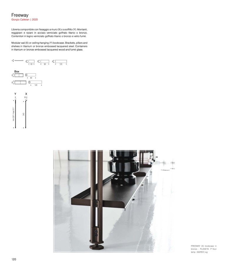 Modular wal (X) or ceiling-hanging (Y) bookcase. Brackets, pillars and
