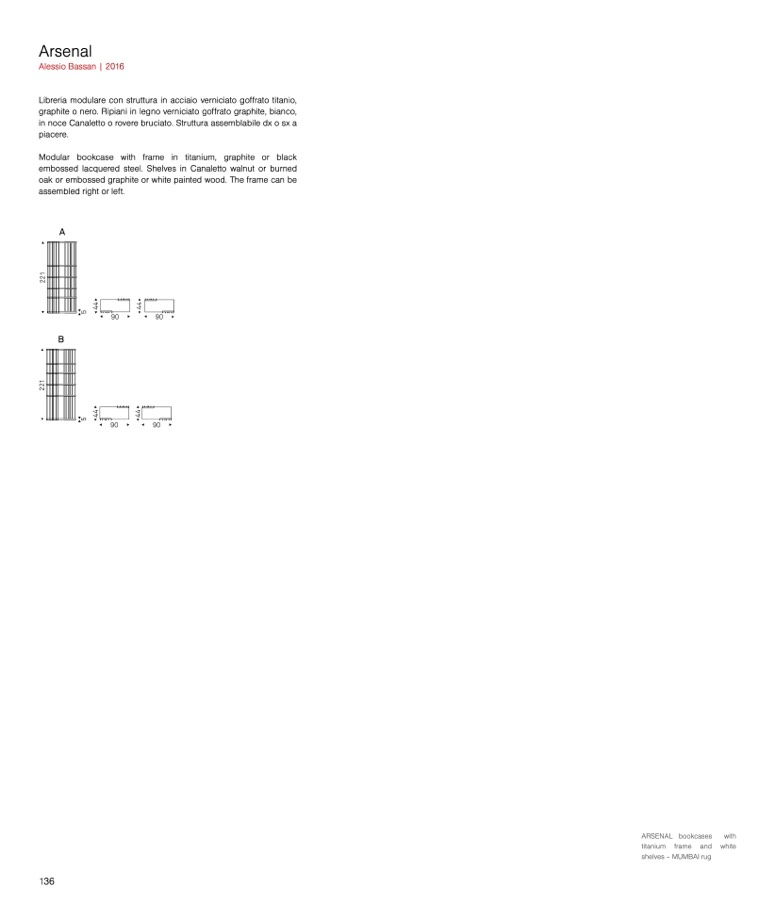 embossed lacquered steel. Shelves in Canaletto walnut or burned