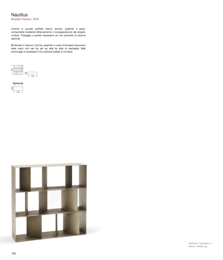 Libreria in acciaio goffrato titanio, bronzo, graphite o pearl,