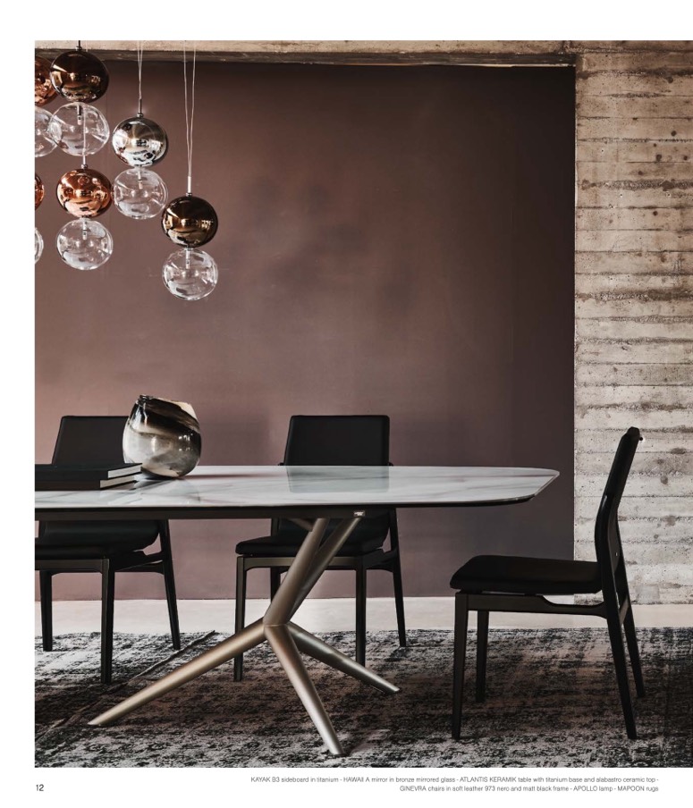 KAYAK B3 sideboard in titanium - HAWAII A mirror in bronze mirrored glass - ATLANTIS KERAMIK table with titanium base and alabastro ceramic top -