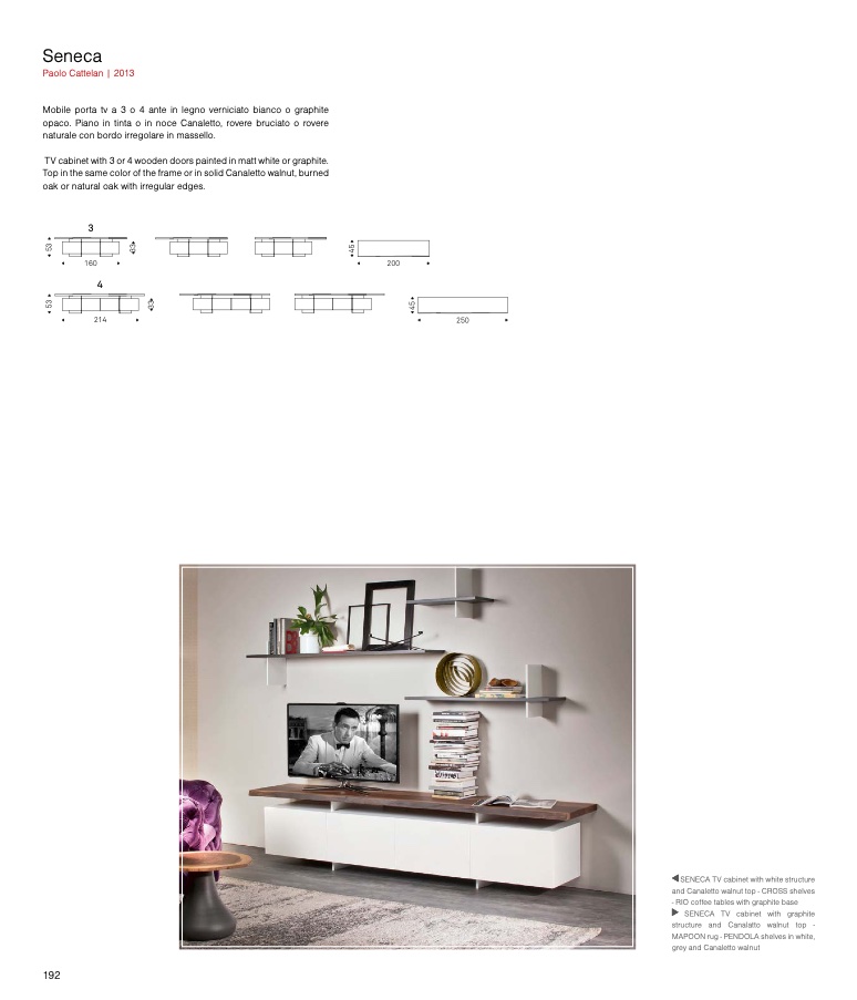 TV cabinet with 3 or 4 wooden doors painted in matt white or graphite.
