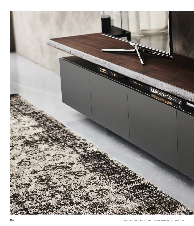 SENECA TV cabinet with graphite structure and burned oak top - MAPOON rug