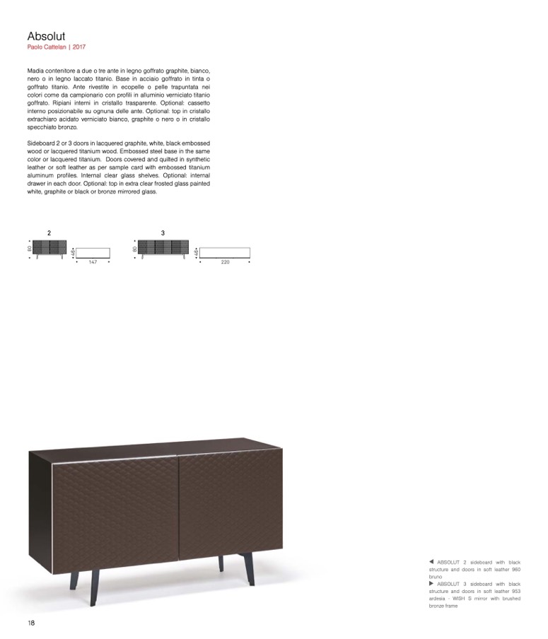 color or lacquered titanium. Doors covered and quilted in synthetic