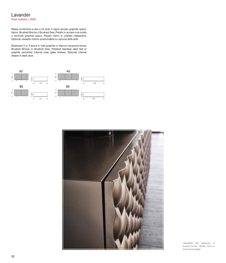 Sideboard 2 or 3 doors in matt graphite or titanium lacquered wood,