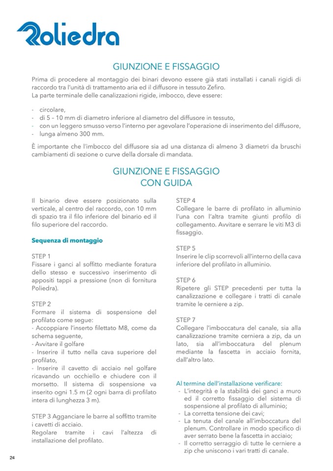 raccordo tra l’unità di trattamento aria ed il diffusore in tessuto Zefiro.
