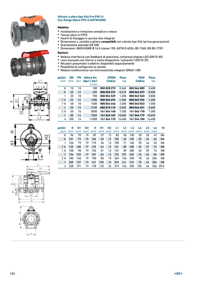 Valvola a sfera tipo 546 Pro PVC-U