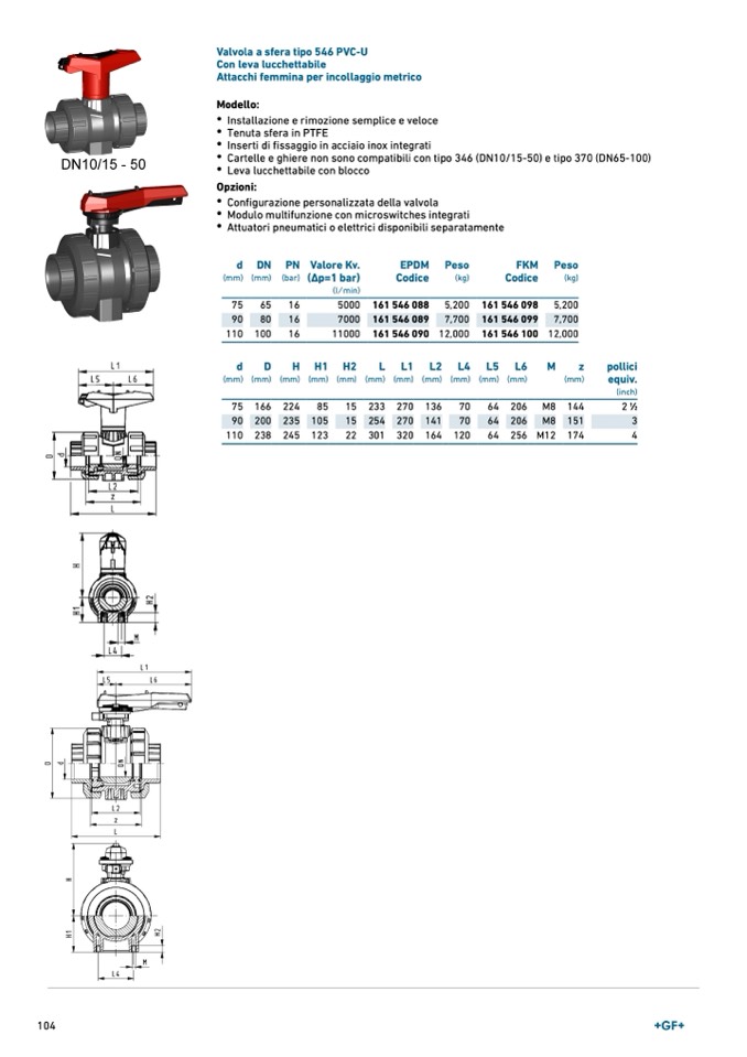 Valvola a sfera tipo 546 PVC-U