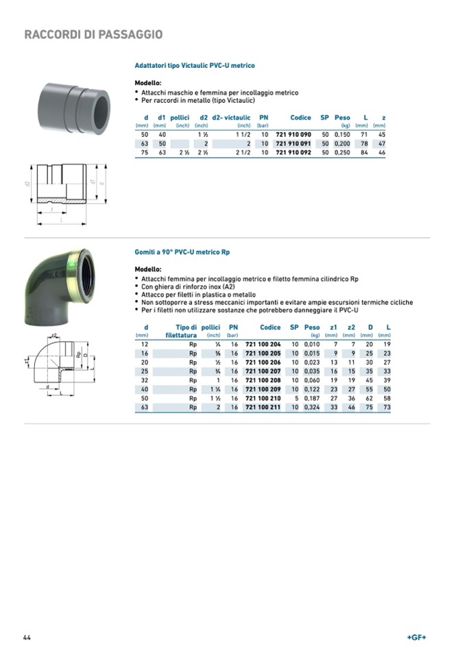 Attacchi femmina per incollaggio metrico e filetto femmina cilindrico Rp