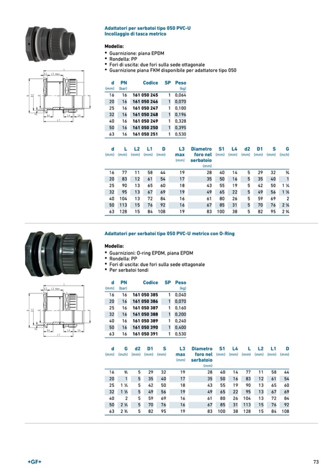 Adattatori per serbatoi tipo 050 PVC-U