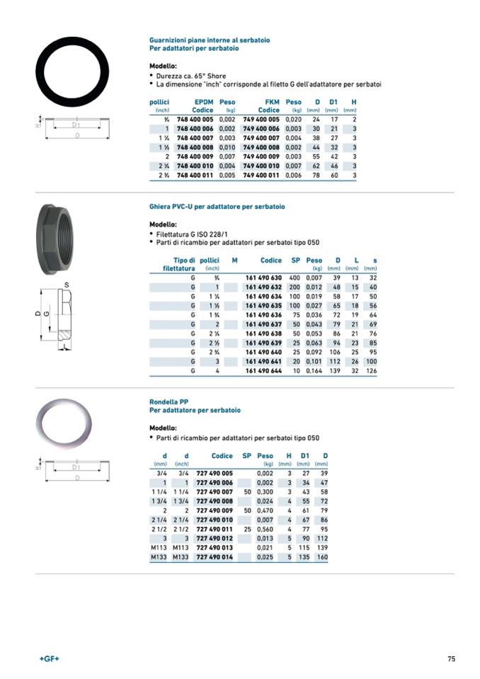 Parti di ricambio per adattatori per serbatoi tipo 050