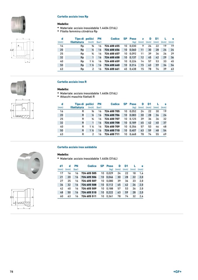 Materiale: acciaio inossidabile 1.4404 (316L)