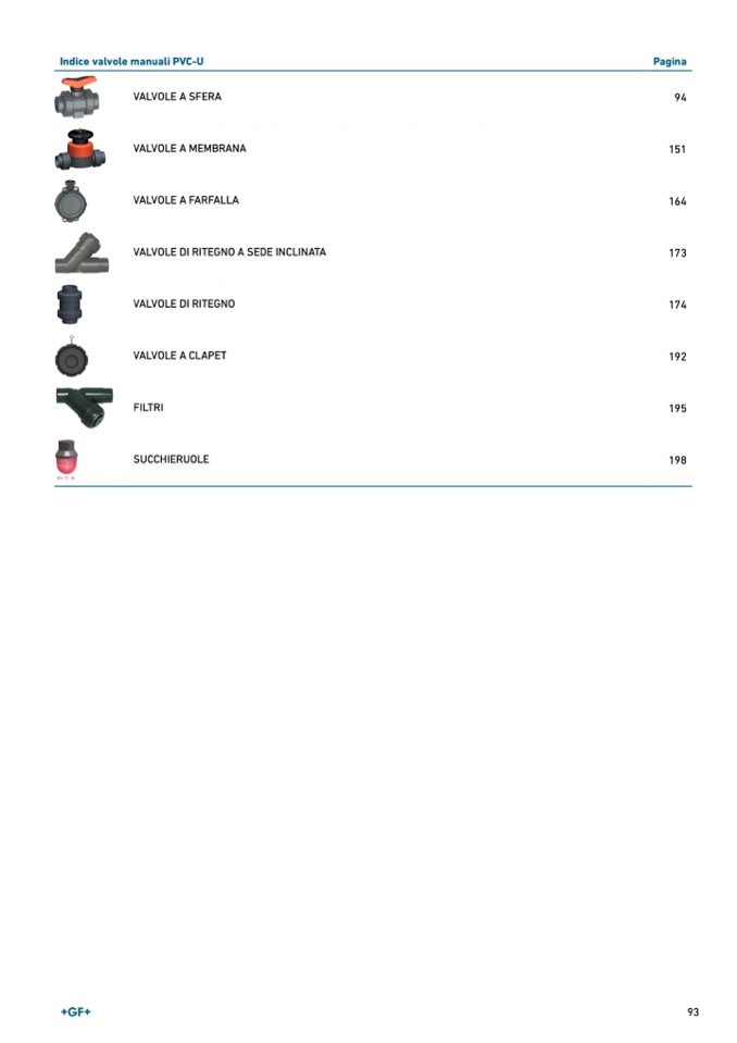 Indice valvole manuali PVC-U