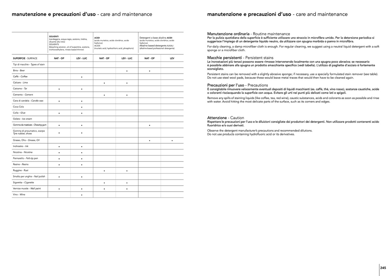 Persistent stains can be removed with a slightly abrasive sponge; if necessary, use a specially formulated stain remover (see table).