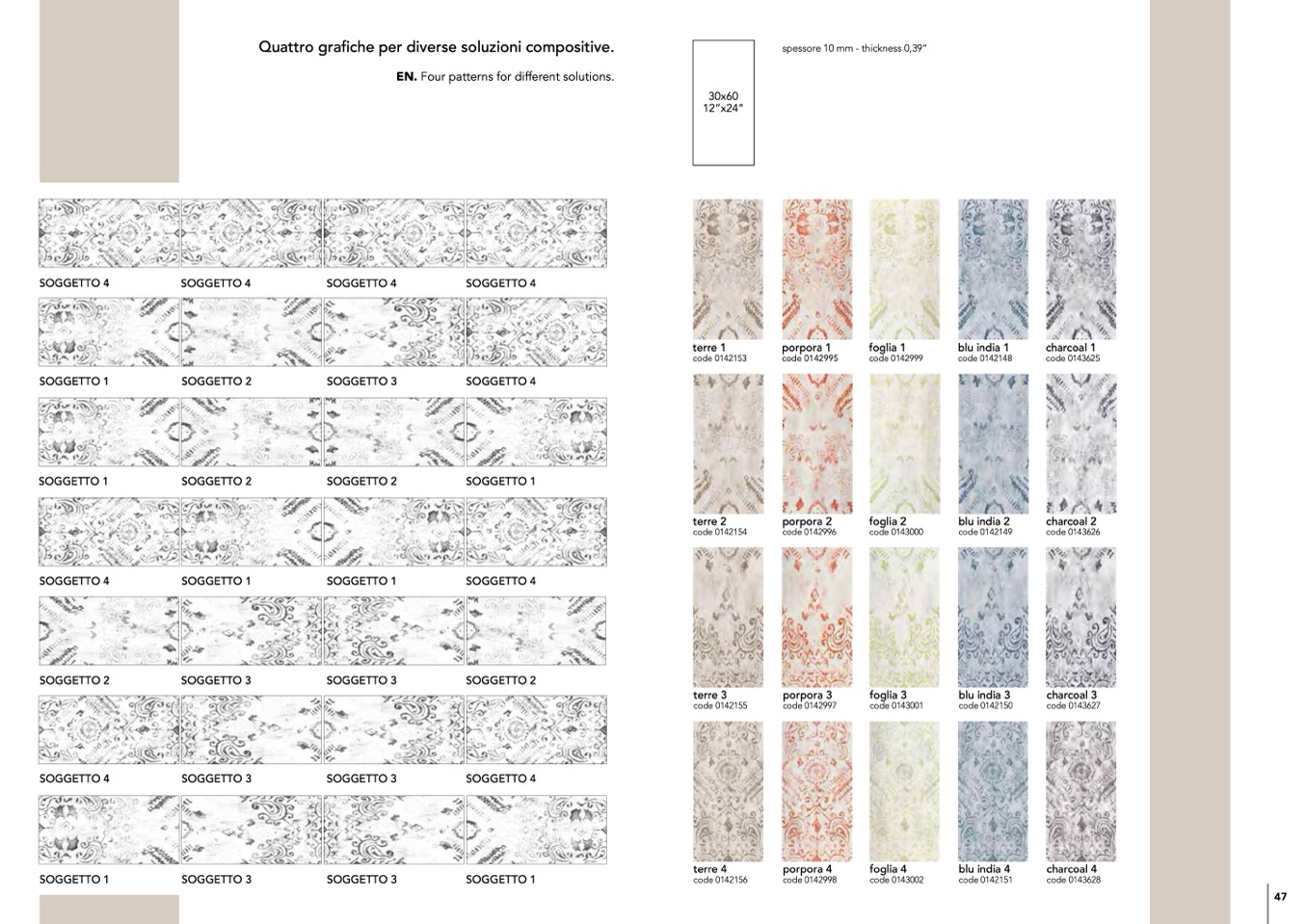 Quattro grafiche per diverse soluzioni compositive.