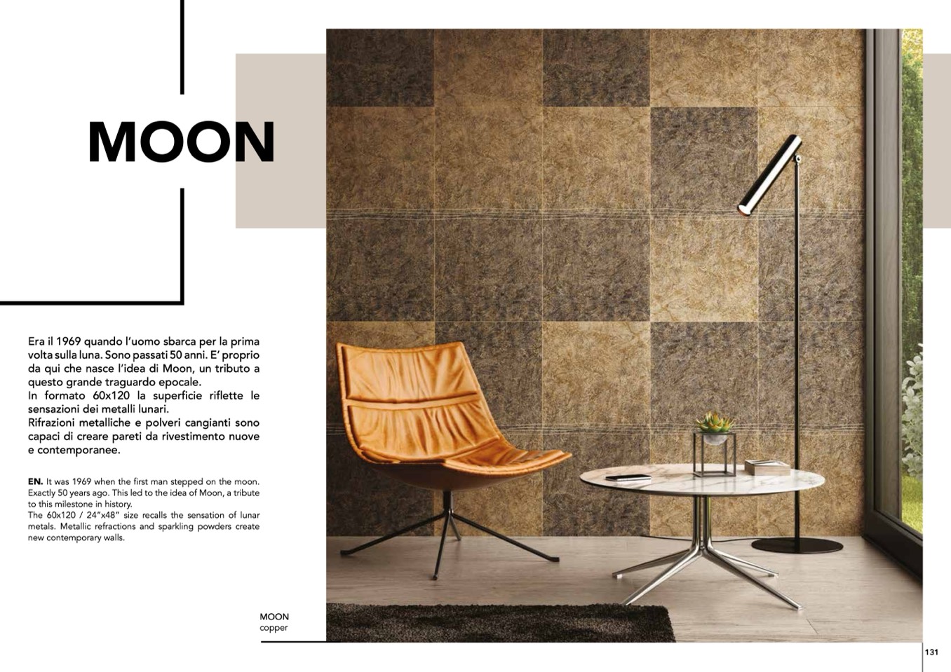 The 60x120 / 24”x48” size recalls the sensation of lunar