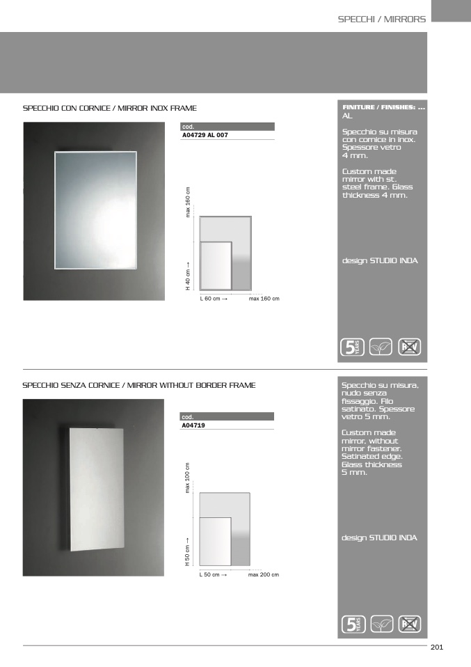 SPECCHIO CON CORNICE / MIRROR INOX FRAME