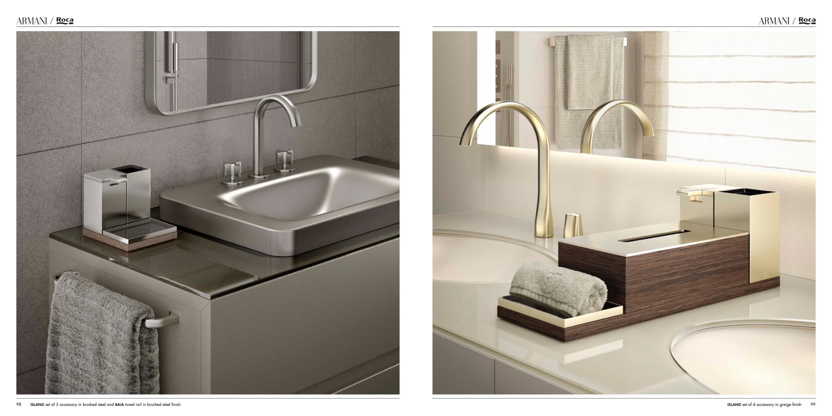 ISLAND set of 3 accessory in brushed steel and BAIA towel rail in brushed steel finish
