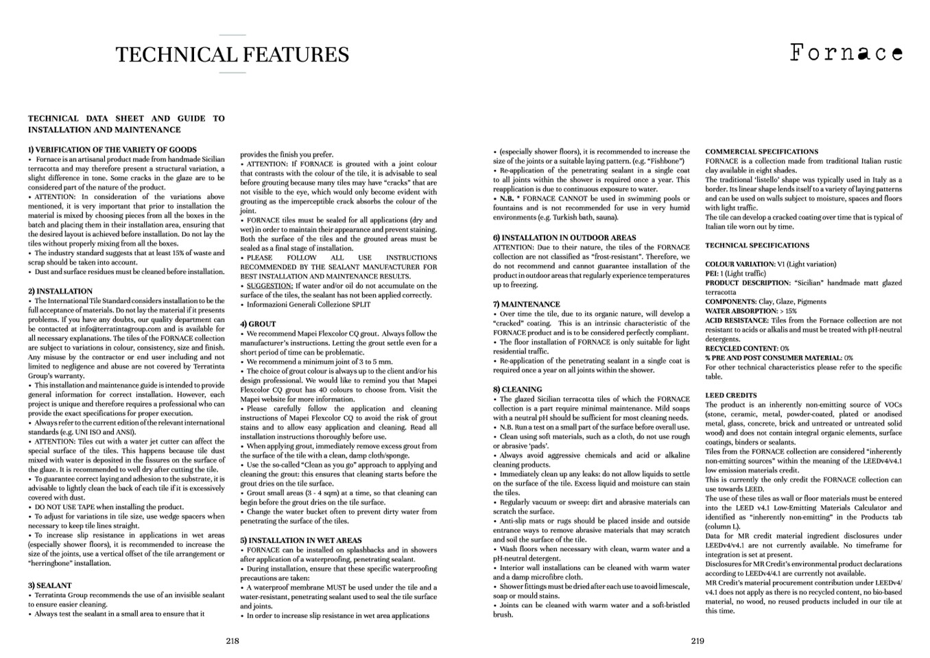 ATTENTION: Due to their nature, the tiles of the FORNACE