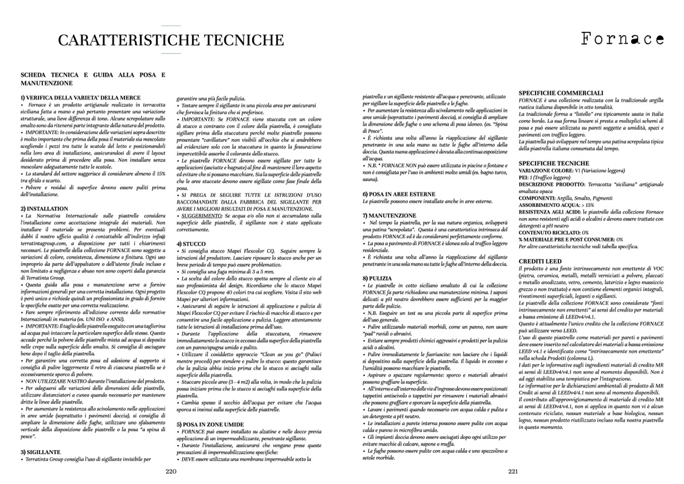 necessari. Le piastrelle della collezione FORNACE sono soggette a