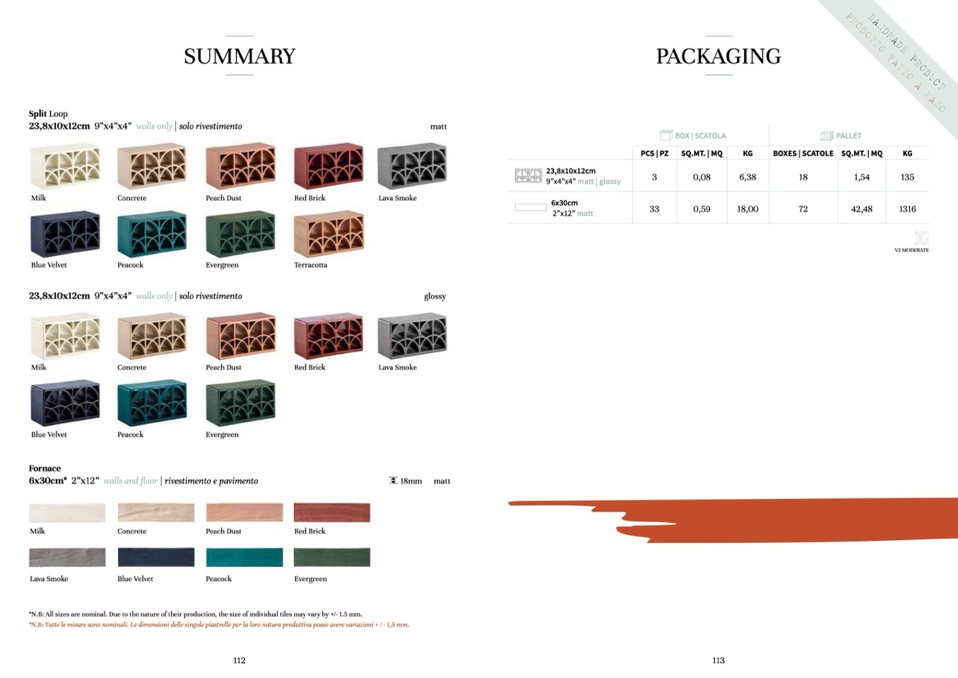 *N.B: Tutte le misure sono nominali. Le dimensioni delle singole piastrelle per la loro natura produttiva posso avere variazioni + / - 1,5 mm.