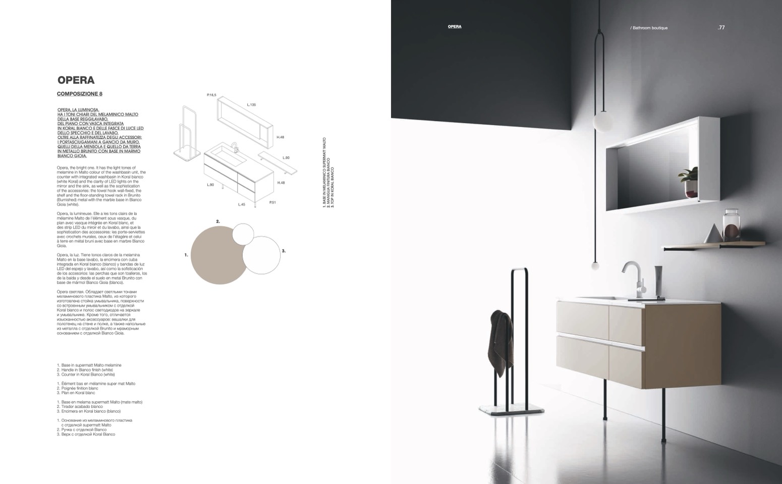 melamine in Malto colour of the washbasin unit, the