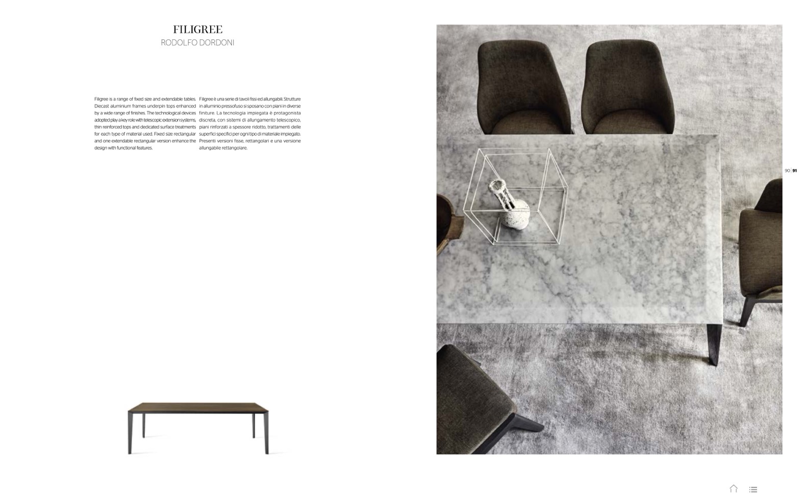 Filigree è una serie di tavoli fissi ed allungabili. Strutture