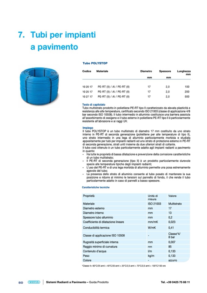 Il tubo POLYSTOP è un tubo multistrato di diametro 17 mm costituito da uno strato