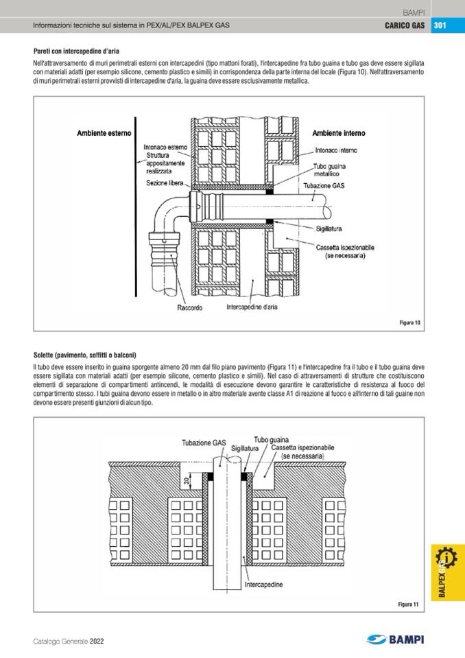 Nell'attraversamento di muri perimetrali esterni con intercapedini (tipo mattoni forati), l'intercapedine fra tubo guaina e tubo gas deve essere sigillata