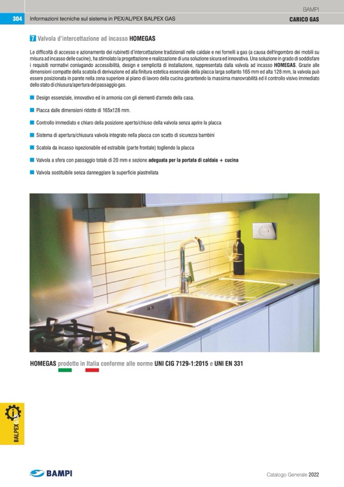 HOMEGAS prodotto in Italia conforme alle norme UNI CIG 7129-1:2015 e UNI EN 331